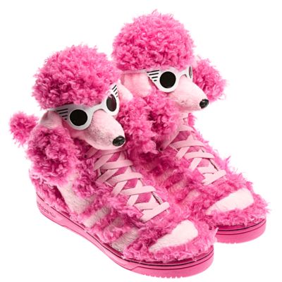 Trust me when I say, a young queen in the ball scene is going to snatch up these Adidas poodle sneakers. She will either vogue for points in them, or walk a Lady Gaga vs. Niki Minaj category.  Click here for more info.